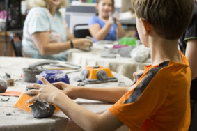 What is up the stairs, you ask? Well, that is where local magic happens. Kat Whaley has two classrooms equipped to support all kinds of art projects and activities. She leads classes for the community, from kids in Pre-K to Adults. We also have a ceramics and glazing room, led by Betty Perkins, a favorite of our students.