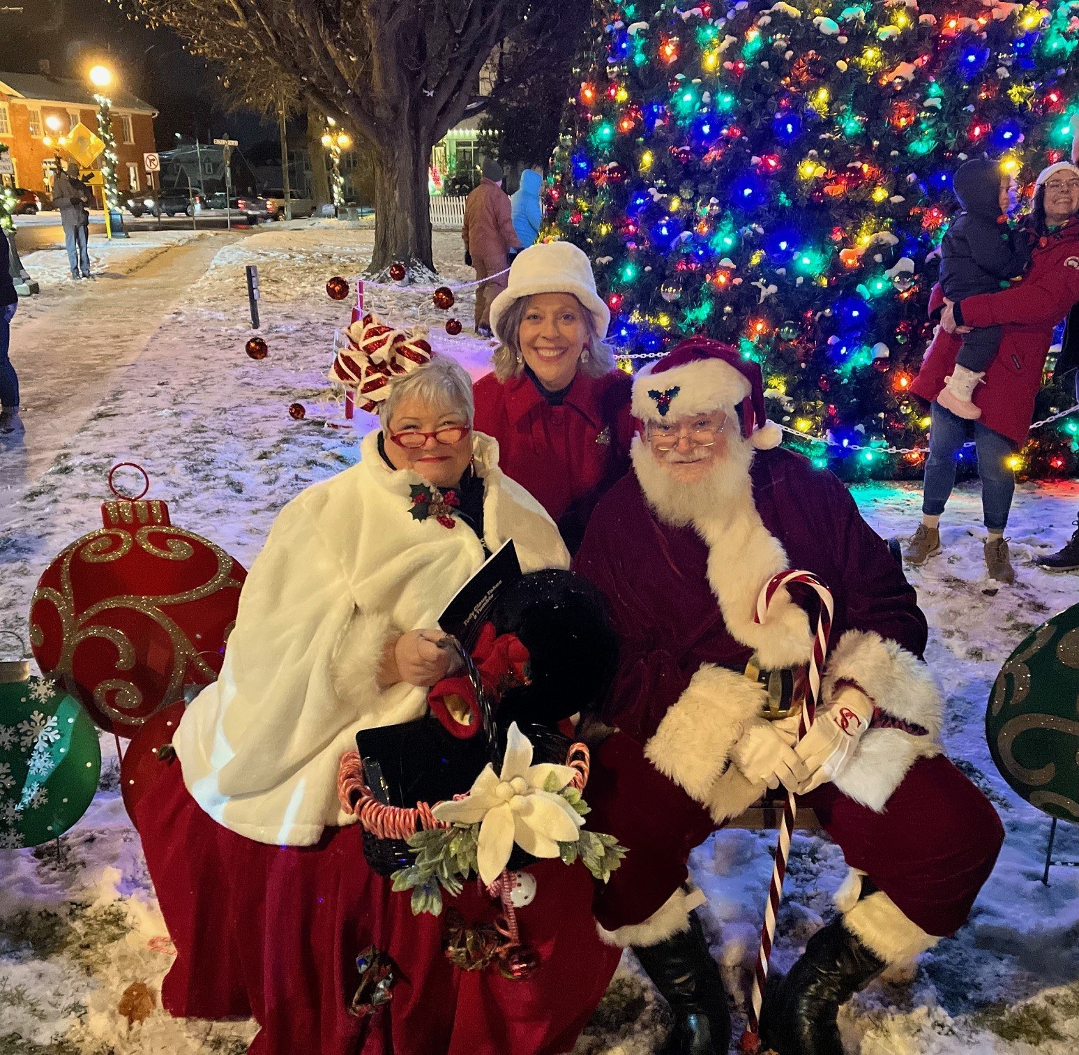 Two local second graders received a rousing cheer as they flipped the switch and illuminated the magnificent tree. Tudy Claus (Susan Biggs Wallace) and Janet Ostrum of Bayberry House Interiors added another layer of cheer by distributing free copies of Wallace’s new children's book, "Tudy Claus Takes a Tumble."