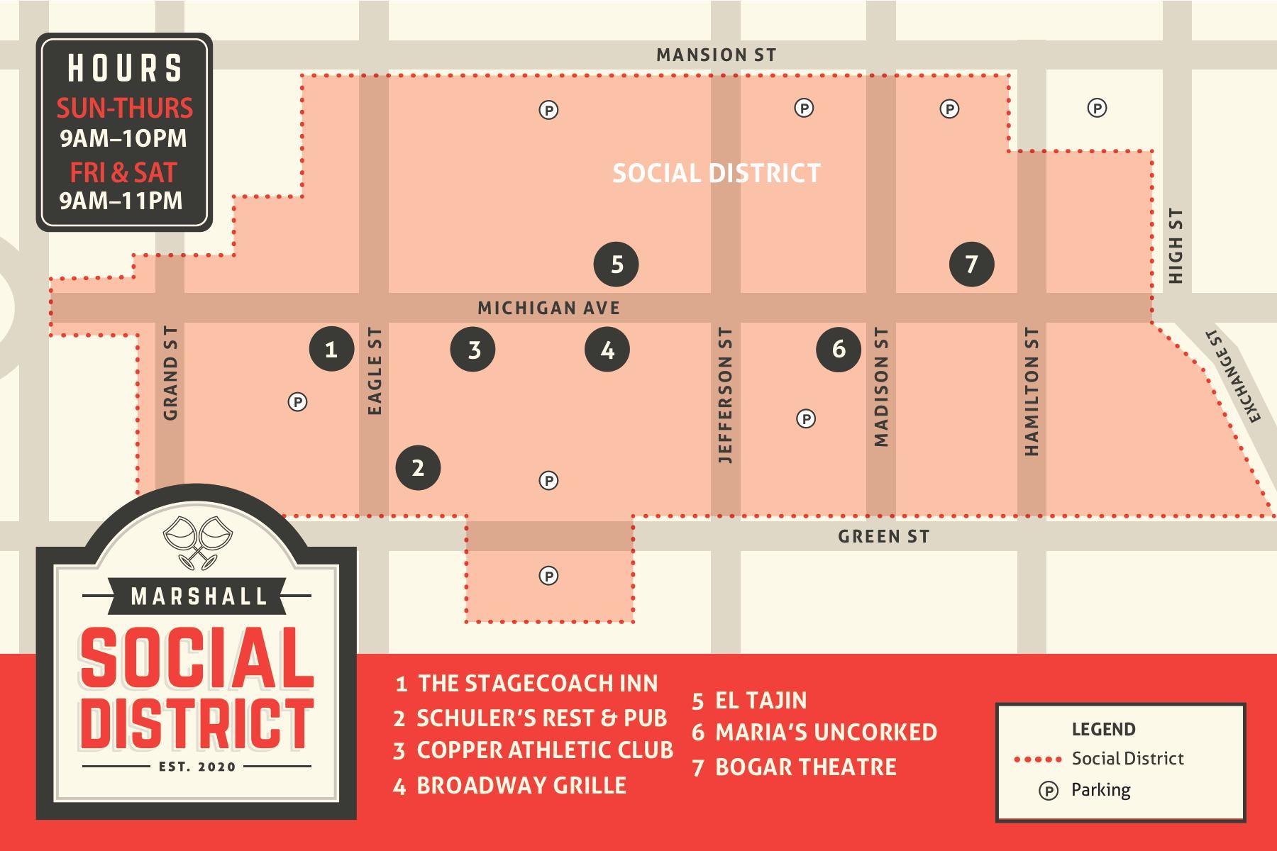 The Marshall Social District was established in September 2020 within the Downtown District.